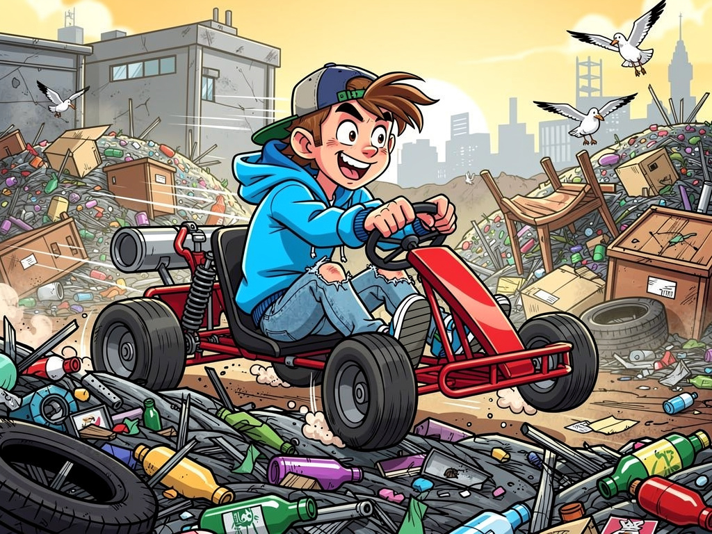 As they pushed the cart toward the large hill that lead down to the exit of the tip, a conversation started regarding who would do the honours of riding the cart down the dirt decline. I, being the smallest, was chosen to take the final ride down the dirty slope. It seemed simple enough.