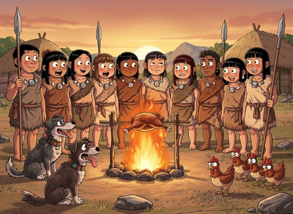 Countless generations had honed the hunting process. These people’s ancestors had worked out the best way to hunt using their numbers and cunning. I’m sure they must have had pets, such as dogs by this stage. Sometime during this epoch another bright spark figured out that certain animals could be easily kept around and treated like pets. Once they were nice and plump… BAM! Dinner is served.