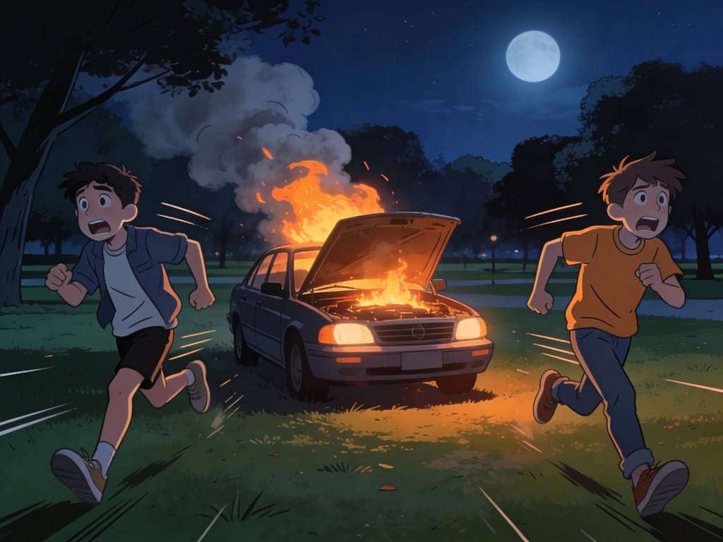 “The car’s on fire! The car’s on fire!”