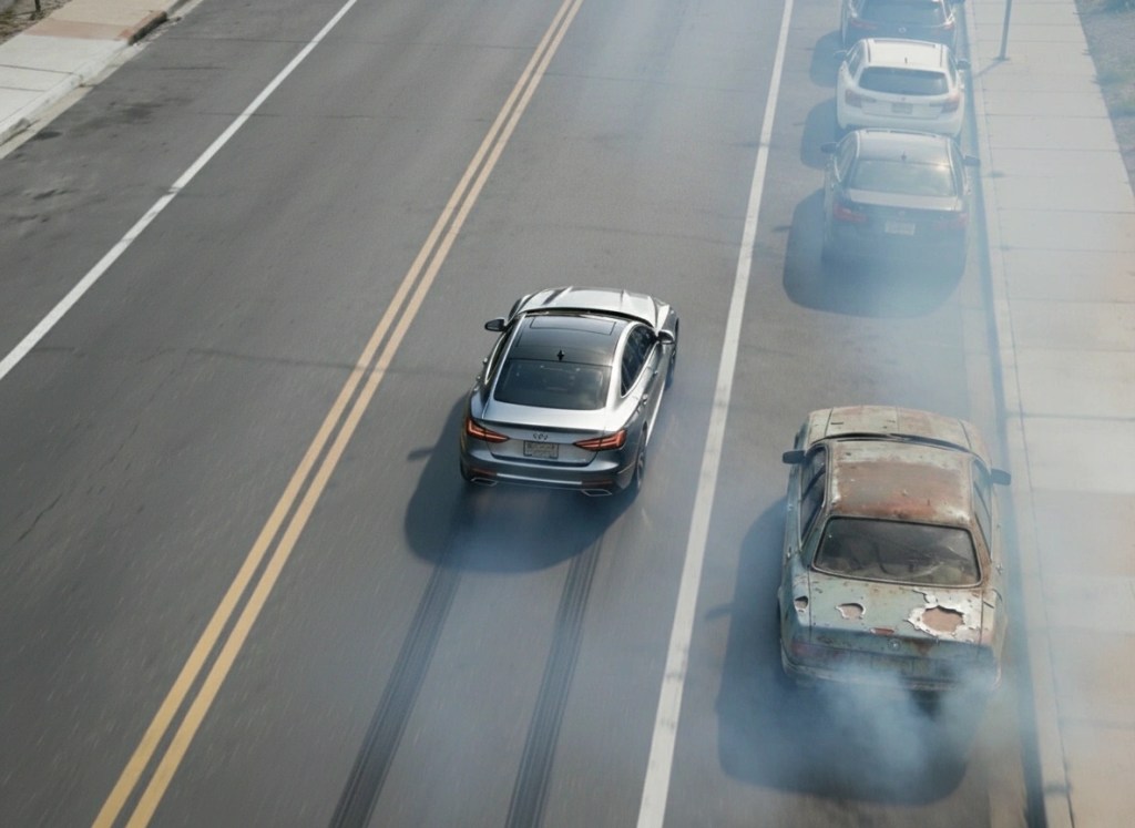 On the inside lane beside us was a brand new looking BMW or something similar; a car that would have no problem eating our shitbox in a race. Regardless of this it seemed that Wayne was intent on attempting to outrun this car and jump in front of it.