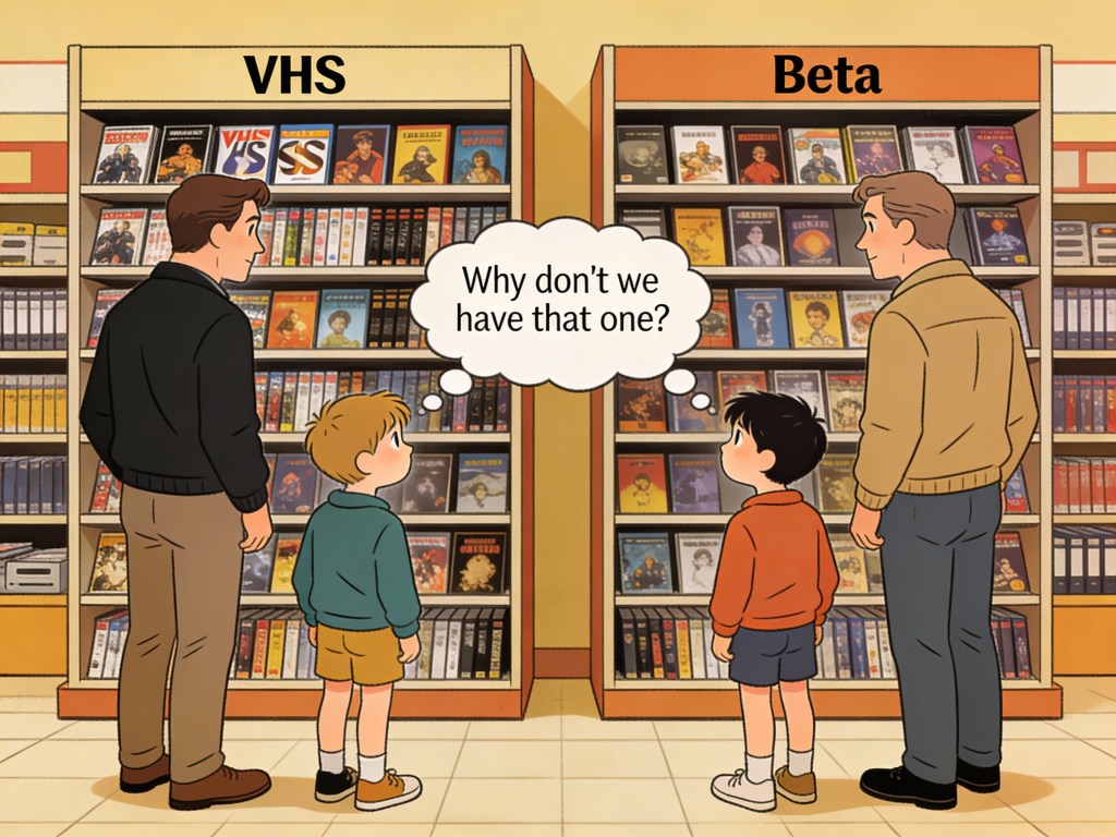 Back to my childhood video format dilemma, in the end VHS was victorious and Beta was relegated to technological history.