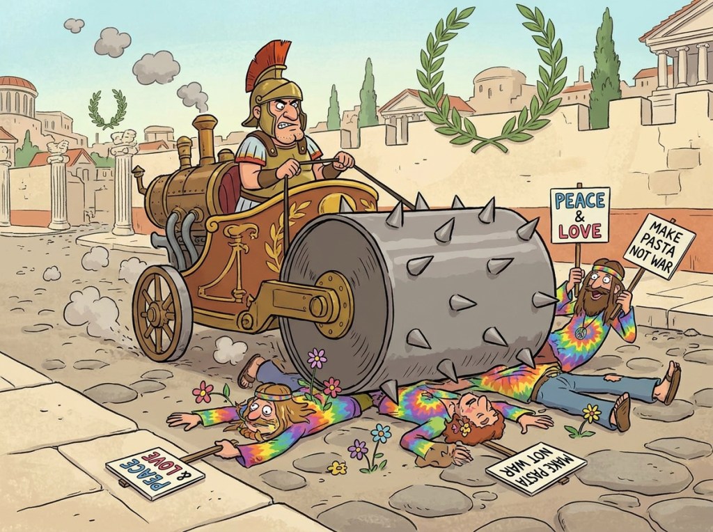 With the western world spreading its empires across the globe and overwhelming populations with their advanced technology, they seemed to be onto a good thing. Maybe you ‘savages’ might like to get in on this. A combination of ‘look at our magical technology’ and ‘are you aware of your immortal soul?’ was a pretty good sales pitch. I reckon that original peacenik left a shadow of doubt once people thought about it though; especially the oppressed.